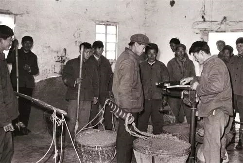 到了粮站,大家要排很长的队。工作人员会把铁戳子扎进麻袋里检查粮食质量。若是不合格,农民只能把粮食再挑回去,重新晾晒、挑拣,然后再来排队。
